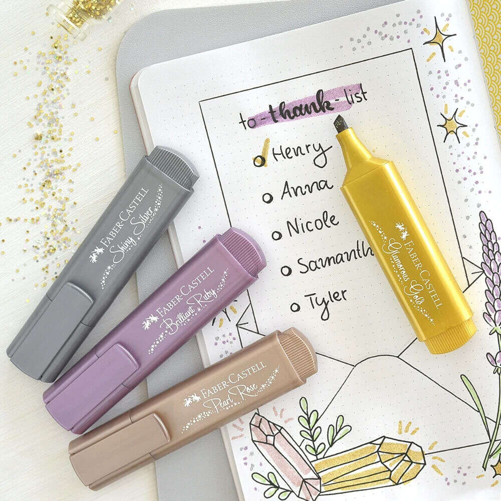 Metallic fosforlu kalemlerin renkleri solmaya karşı dayanıklıdır. Parlak ve ışıltılı tonlarıyla belgelerinizde fark yaratır. Özellikle karanlık ya da renkli zeminlerde bile okunabilirliği yüksektir.