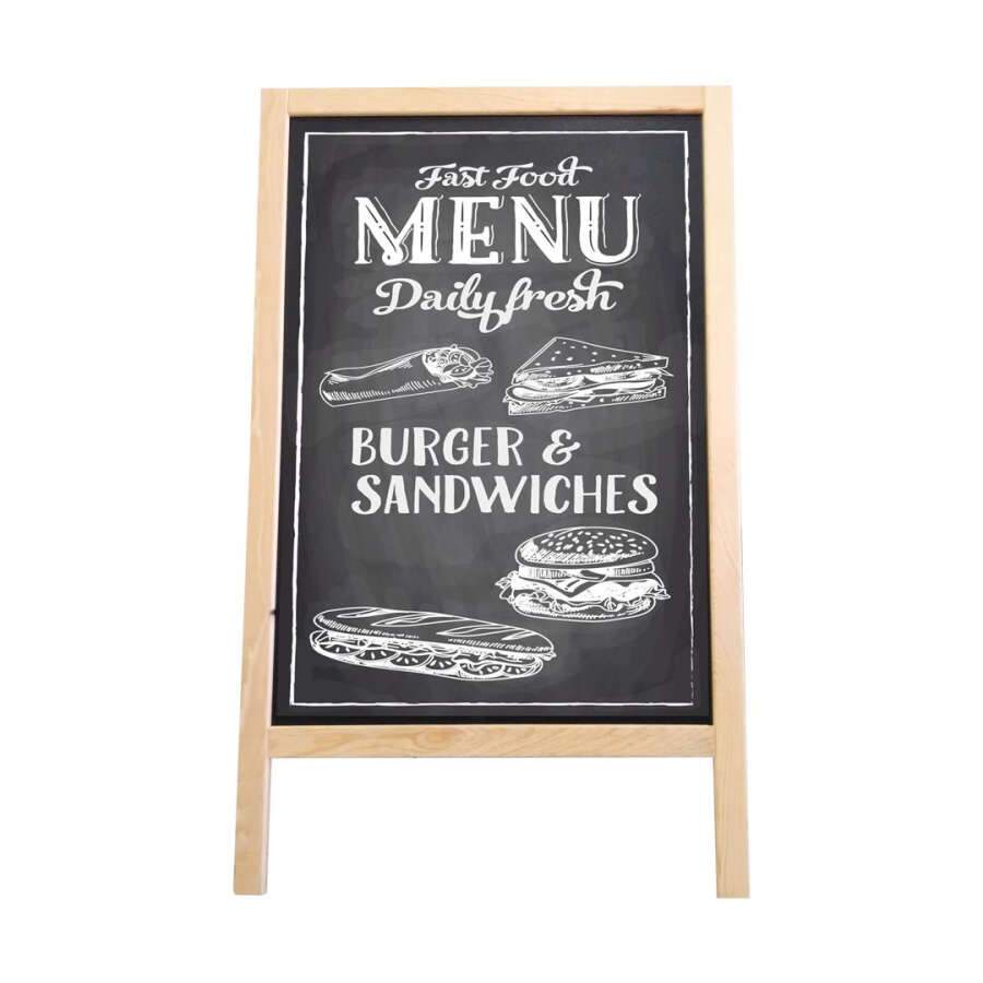 Kaldırım üstü kullanımı için ahşap yazı tahtası.