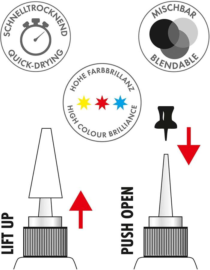 Pürüzsüz akışı ve hızlı kuruma özelliği sayesinde cam, metal, seramik ve sentetik kağıt gibi farklı yüzeylerde mükemmel sonuçlar elde edebilirsiniz. Yüzeylere kolayca nüfuz eden bu mürekkep, eşsiz efektler yaratmanıza olanak tanır.