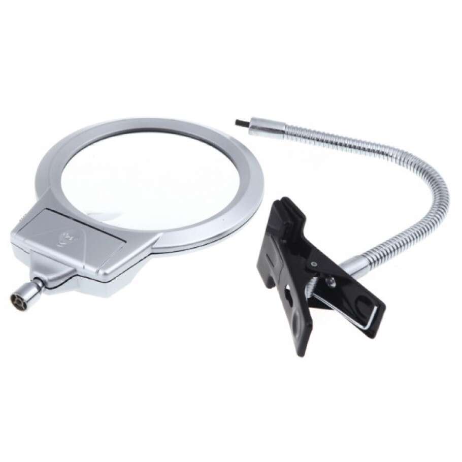 3 adet AAA pil ile çalışan bu büyüteç, 2 adet LED ışığı ile net bir aydınlatma sağlar. Böylece çalışma alanınız her zaman aydınlık olur ve göz yorgunluğunu azaltır. Akrobat kolu 42 cm uzunluğunda olup, masaya klipsle sabitlenerek kullanım kolaylığı sunar.